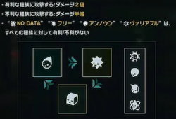 ・その他種族の「NO DATA」「フリー」「アンノウン」「ヴァリアブル」は全ての種族に対して有利/不利がない |