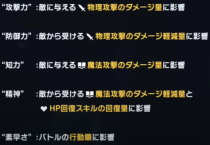 ●攻撃力/防御力/知力/精神力/素早さ/CTR率のの影響