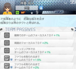 ●MFは神童がパッシブが優秀で強い ![]() MFは神童が強い、パッシブに「ファウルを取られるまでチームATDF+2%」が2つあるので優秀です |