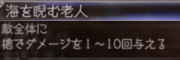 | フレイムグレースにいるNPC 海を睨む老人 強さ4:2回 チェインライトニング ランダムな敵に雷属性ダメージを3回、麻痺の効果を確率で2ターン付与 |