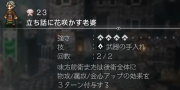 | ヴィクターホロウにいるNPC 禁断の大弓持ちNPCで雇うと強力な技が使える 伝承を語る老人 強さ10:2回 伝承の雷鳴:ランダムな敵に雷特大ダメージ5回、麻痺3ターン付与 |